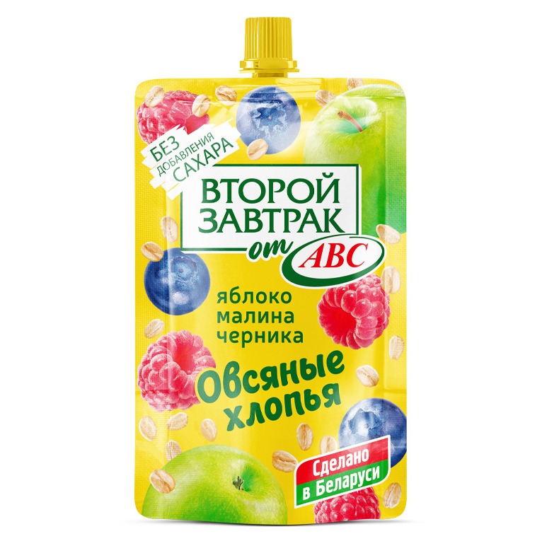 Фруктовое пюре из яблок, малины и черники с добавлением овсяных хлопьев имеет яркий кисло-сладкий вкус и густую текстуру. Благодаря овсяным хлопьям пюре является отличным источником питательных веществ и растворимых волокон, которые помогают улучшить пищеварение. Без добавления сахара, консервантов и красителей фруктовый десерт является идеальным выбором для тех, кто ищет здоровые и вкусные альтернативы сладким десертам